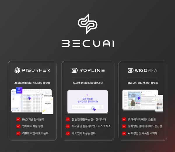 ºñÅ¥AI´Â À̹ø Àü½Ã¿¡¼ RDPLINE, AI SURFER(AI¼ÆÛ), WIGOVIEW(À§°íºä) µî 3°¡Áö ÇÙ½É Á¦Ç°À» °ø°³ÇÑ´Ù. ºñÅ¥AI´Â ½Å·Ú °¡´ÉÇÑ µ¥ÀÌÅÍ È®º¸ºÎÅÍ ½Ç¹« ÀλçÀÌÆ® »ý»ê, µ¥ÀÌÅÍ ±â¹Ý ¼º°ú °¡½ÃÈ¿¡ À̸£±â±îÁö ±â¾÷°ú ±â°üÀÌ AI µµÀÔ °úÁ¤¿¡¼ Á÷¸éÇÏ´Â ÇÙ½É °úÁ¦¿¡ ´ëÇÑ ÅëÇÕÀû ÇØ¹ýÀ» Á¦½ÃÇÑ´Ù.
