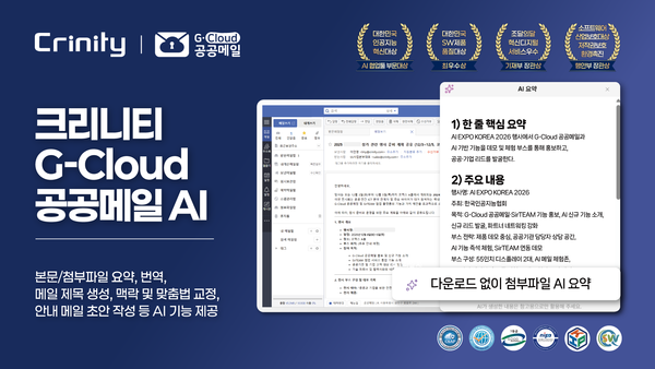 ÇöÀç Å©¸®´ÏƼ G-Cloud °ø°ø¸ÞÀÏÀº ´Ù¼öÀÇ °ø°ø±â°ü¿¡ µµÀÔµÇ¾î ¾ÈÁ¤ÀûÀÎ ¿î¿µ ¼º°ú¸¦ °ÅµÎ°í ÀÖ´Ù. Å©¸®´ÏƼ´Â À̹ø Àü½Ã Âü°¡¸¦ °è±â·Î ÀΰøÁö´É°ú Ŭ¶ó¿ìµå ±â¼úÀÌ À¶ÇÕµÈ Â÷¼¼´ë ¸ÞÀÏ ÀÎÇÁ¶ó¸¦ È®»ê½Ã۰í, »ê¾÷ °ü°èÀÚµé°úÀÇ ºñÁî´Ï½º Çù¾÷À» ´õ¿í È®´ëÇØ ³ª°¥ °èȹÀÌ´Ù.
